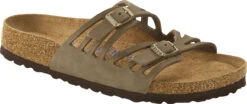 - Leather covered dual density EVA footbed with memory foam for cushioning and support