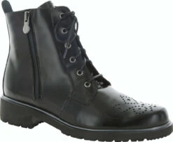 Englin’s Fine Footwear presents the women’s ‘Sarah’ from Munro. Got somewhere to go? The Munro Sarah will get you there with a statement in this no-nonsense combat boot. Let everyone know you mean business, but the Sarah is more than just tough combat style. The Munro Sarah is surprisingly light and the breathable lining and contoured footbed will keep you comfortable no matter what the world throws at you. The lace-up closure can be adjusted for a customized fit and then locked in while you use outside-zip for your daily on and off. The non-functional brogues on the toe add a touch of classic style to the smooth and slick leather upper.