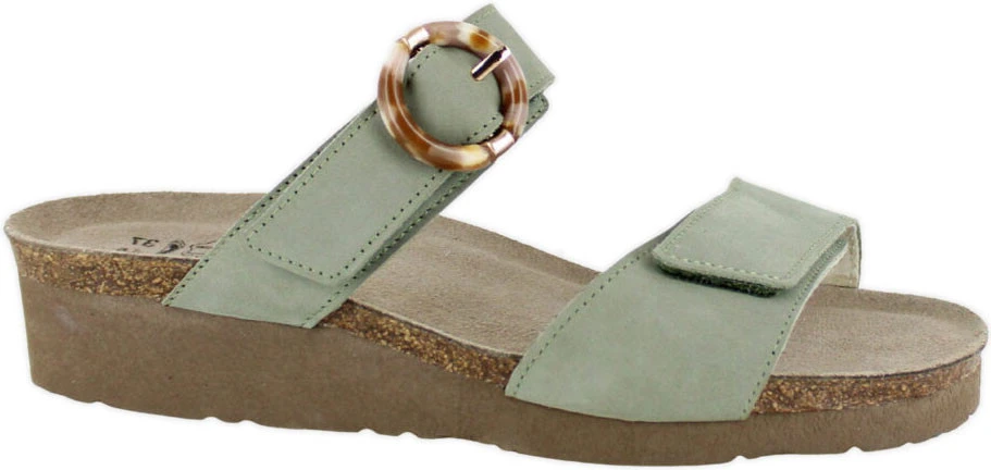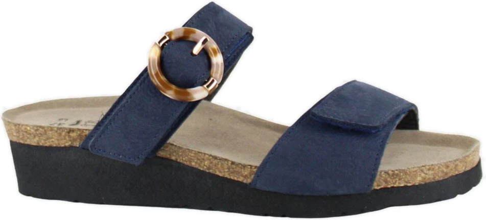 Englin’s Fine Footwear presents the women’s ‘Anabel’ from Naot. Anabel is an effortlessly elegant sandal with buckle accent on its strap. The Anabel features an open back to slip on with ease. Naot’s anatomic cork & latex footbed is wrapped in a pampering suede and molds to the shape of the foot with wear.