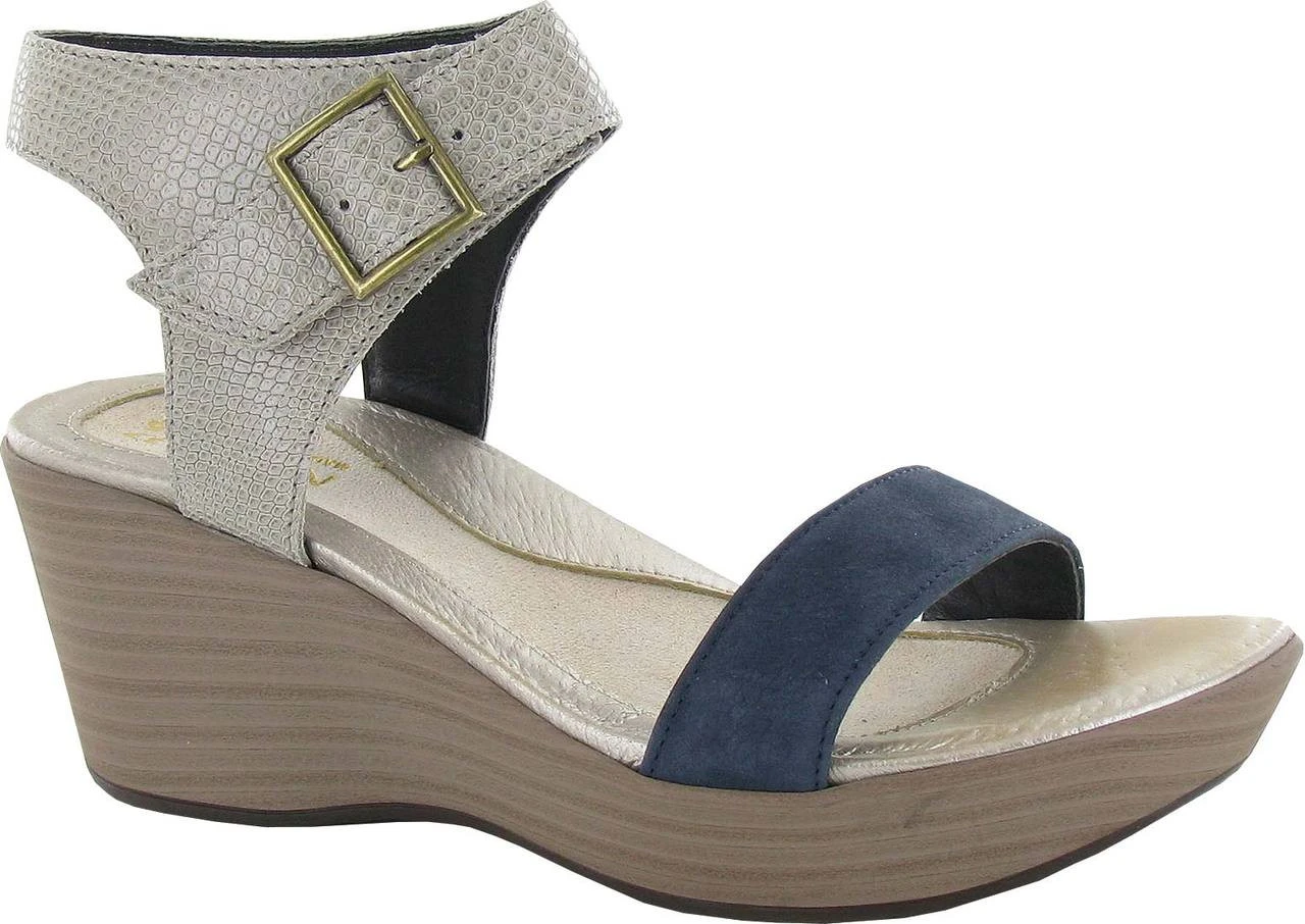 Englin’s Fine Footwear presents the women’s ‘Caprice’ from Naot. The Caprice wedge pairs perfectly with jeans or a dress. The fully padded upper creates ultimate comfort while the faux buckle allows for adjustability. Naot’s anatomic cork & latex footbed is wrapped in leather with a microfiber center to prevent slipping and molds to the shape of the foot with wear. The Impulse Collection features a TPR sole which is extremely lightweight. This sole offers the look of a 2.75″ wedge without the feel.