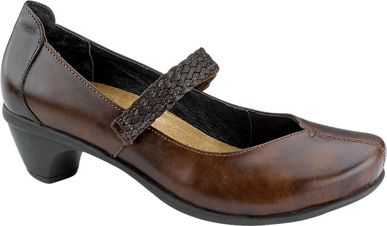 Englin’s Fine Footwear presents the women’s ‘Forward’ from Naot. The Naot Forward is a feminine maryjane heel with a braided hook and loop closure. This style provides a dressier look as well as a 2″ heel without the feel. Naot’s anatomic cork & latex footbed is wrapped in pampering suede and molds to the shape of the foot with wear. The Avant-garde Collection features a 2″ TPR sole with a metal shank.