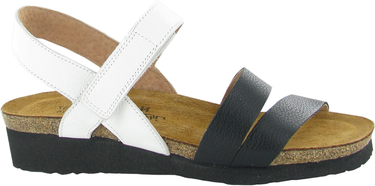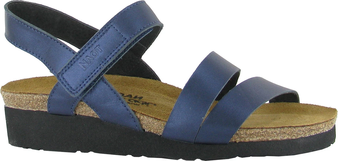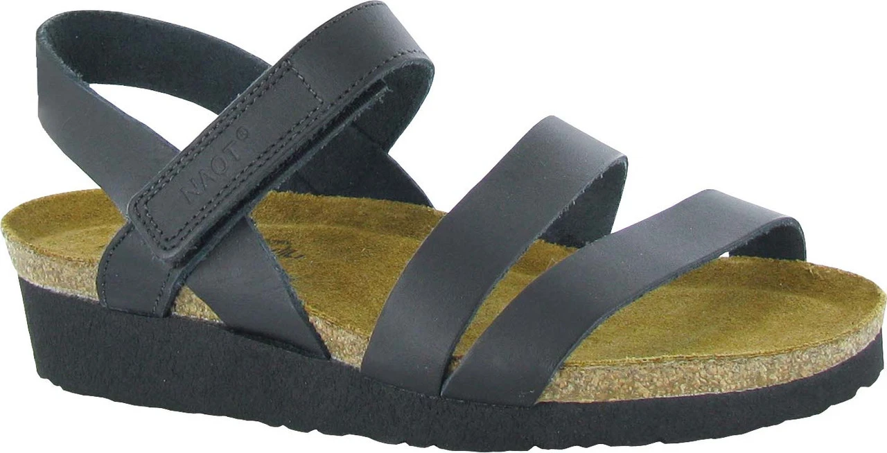 Englin’s Fine Footwear presents the women’s ‘Kayla’ from Naot. The Kayla is a three-strap sandal with a hook & loop strap at the instep and a backstrap for added stability and support. Naot’s anatomic cork & latex footbed is wrapped in a pampering suede and molds to the shape of the foot with wear. The Elegant Collection features a 1.5″ EVA sole. Narrow to medium fit.