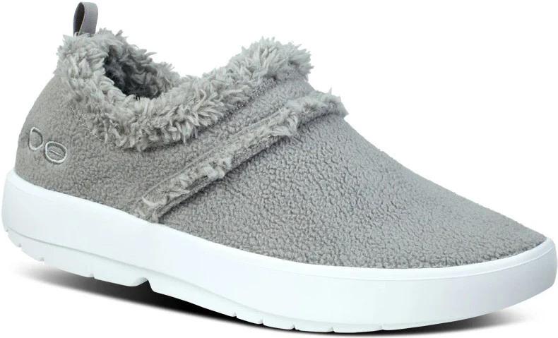 Englin’s Fine Footwear presents the women’s ‘OOcoozie Low Shoe’ from Oofos. The OOcoozie provides the perfect blend of cushion and stability for both indoor lounging and quick errands out. The upper is constructed with a warm vegan sherpa material that is both recyclable and machine washable. Like all Oofos products, it has our unique one-of-a-kind OOfoam™ technology that absorbs impact, so your body doesn’t have to. Add in the patented footbed design that cradles and supports arches and you’ll recover faster. Active recovery with the soft, cozy warmth you desire in a versatile hygge style.