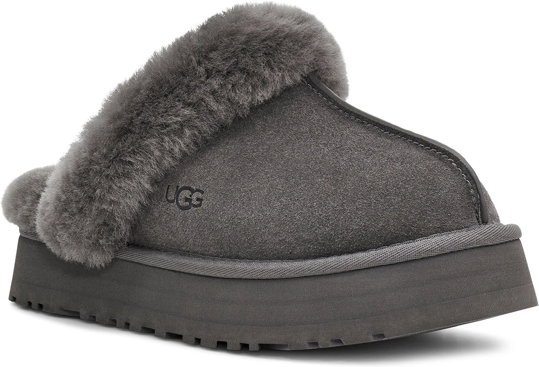 Englin’s Fine Footwear presents the women’s ‘Disquette’ from UGG. Merging our Coquette and Disco styles for a new slipper that’s completely unique, the Disquette adds a retro-style platform sole to a familiar slip-on silhouette for outdoor wear, all-day cushion, and a maximalist look. Crafted from our signature sheepskin and suede, this effortless style adds a playful statement to all your favorite outfits – try pairing with jeans or a flowy midi dress.